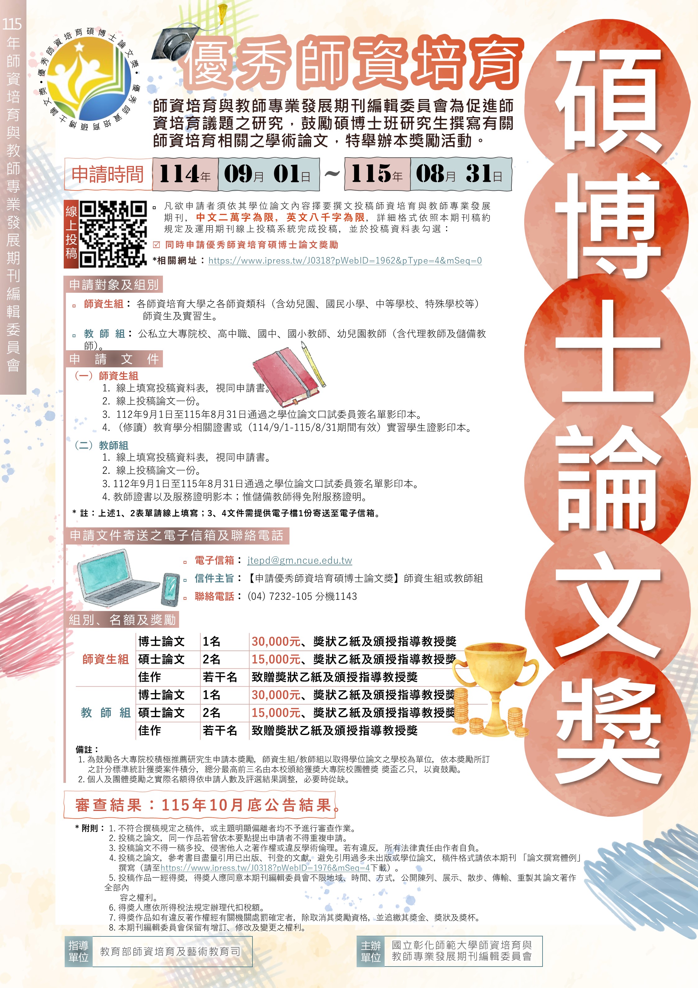 (二)申請文件電子檔請寄送至:jtepd@gm.ncue.