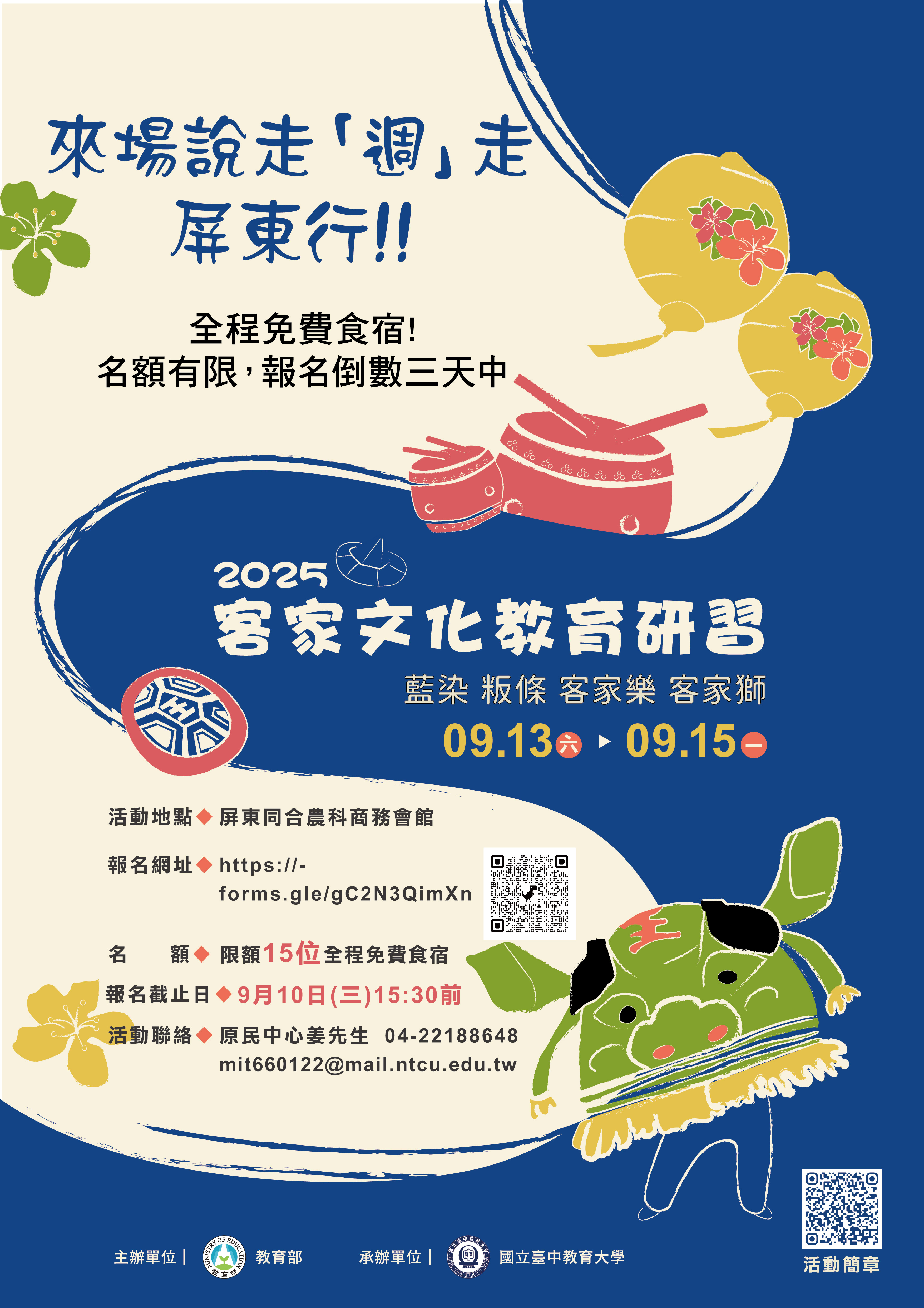 限額15位(屏東火車站9月13日(六)12時集合)