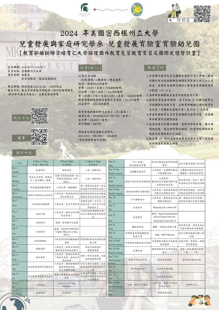 2024年美國密西根州立大學兒童發展與家庭研究學系兒童發展實驗室驗幼兒園